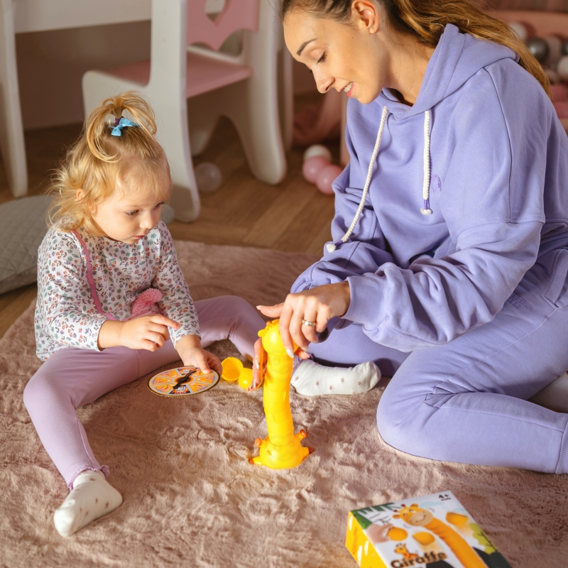 - 🦒 Pełna emocji zabawa polegająca na budowaniu „szyi” żyrafki